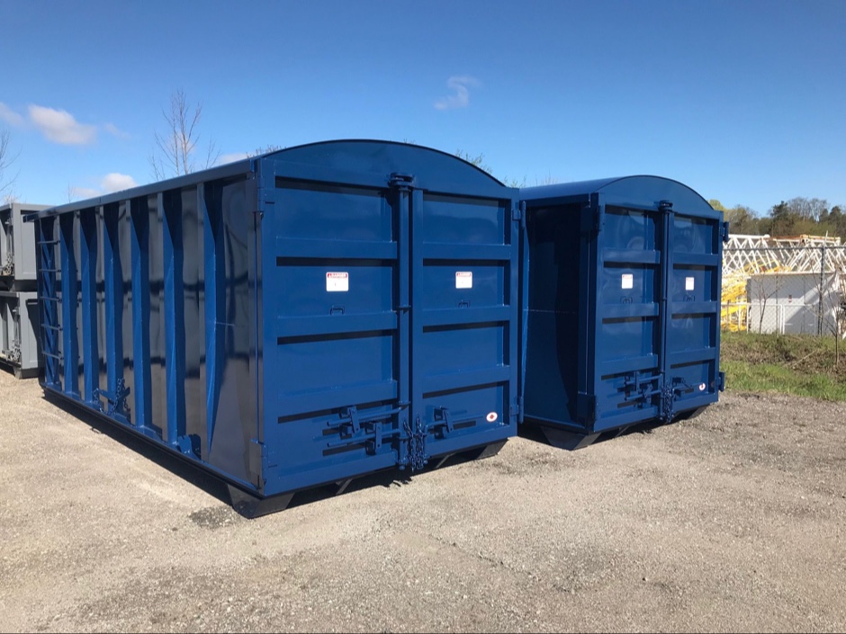 - 40 Cu. Yard Heavy Duty Double Door Recycle Special Roll Off, w/Rolled Roof, Internal, adjustable Baffle (divider), and Sliding Metal Side Doors.