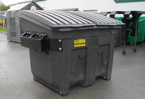 Our HEAVY DUTY polyethylene commercial front load container (poly bin) is made from exclusive high quality, 100% virgin medium-low density polyethylene. This material will stand up to -40°C impacts and resists chemicals and petroleum based liquids. The UV stabilizer will protect the original color pigments.
