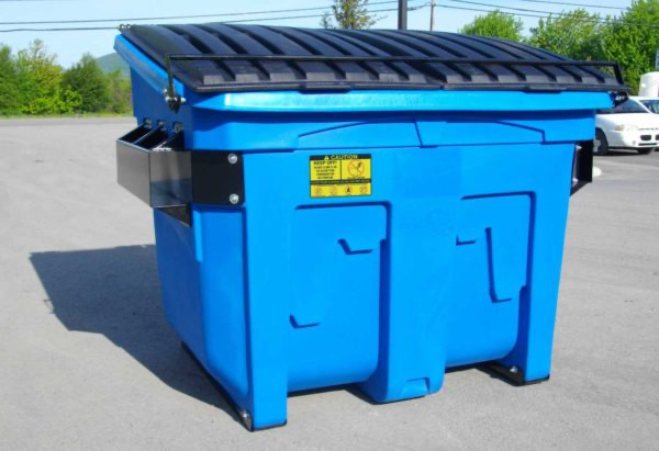 Our HEAVY DUTY polyethylene commercial front load container (poly bin) is made from exclusive high quality, 100% virgin medium-low density polyethylene. This material will stand up to -40°C impacts and resists chemicals and petroleum based liquids. The UV stabilizer will protect the original color pigments.